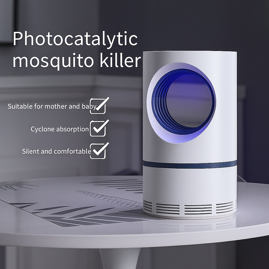 This device uses UV light technology to attract mosquitoes and flying insects, drawing them into a powerful suction fan where they are trapped and dehydrated. Unlike traditional mosquito repellents, this lamp is non-toxic, odorless, and chemical-free, making it completely safe for children and pets.